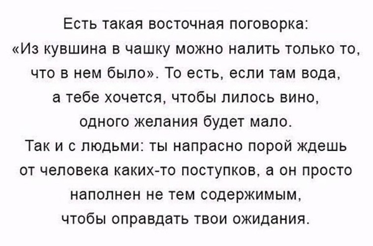 Хорошая мудрость, есть ещё одна! Если я не оправдал ваши ожидания то это ваши ожидания..))
